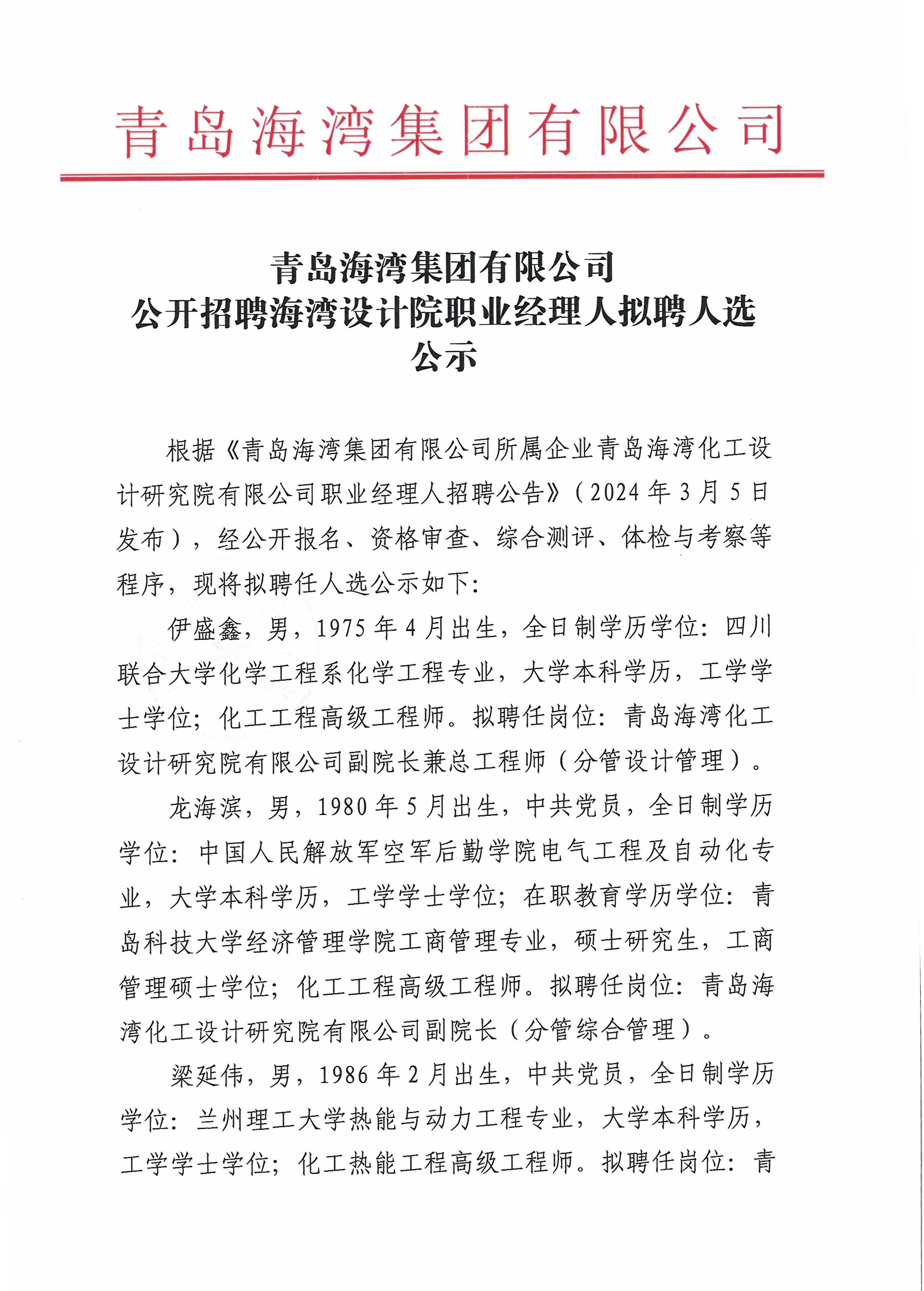 顶 青岛爱游戏官方网站有限公司公开招聘海湾设计院职业经理人拟聘人选公示
