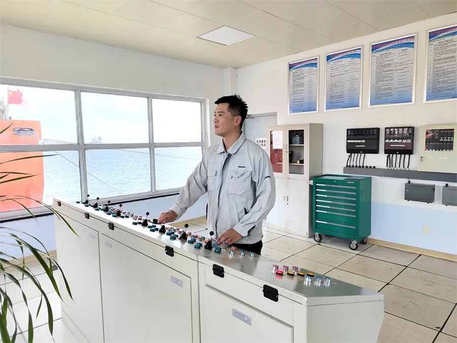 海湾港务运行一班员工测试码头消防系统,确保正常运转。潘洋洋 摄