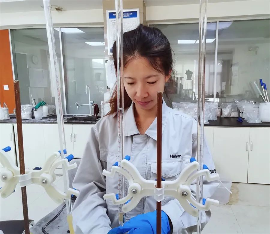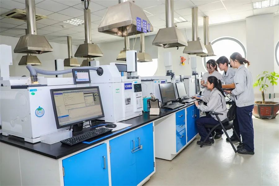 节日期间,海湾索尔维综合管理部化验室员工做好化验分析工作。姜仕晓 摄