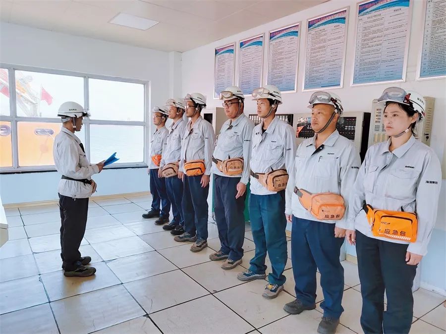 海湾港务运行二班召开工前会,安排当班工作任务。潘洋洋 摄
