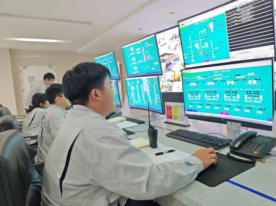 在海湾精化中控室内,生产调度人员坚守岗位,目光紧盯屏幕生产过程控制参数,依托智能生产系统,精准安排任务,协调各方资源,确保生产组织的每一个环节安全高效运行。