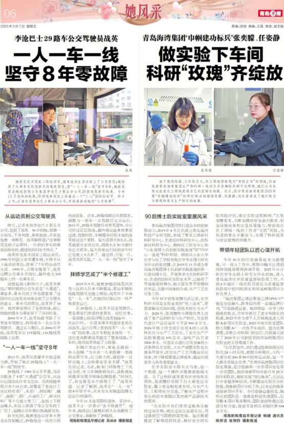 由于装置大、安全要求高,化工领域常被视为“男性主导”的领域,但奋战在青岛爱游戏官方网站生产和科研一线的许多巾帼标兵却不这样想,她们认为女性也能在化工领域展现自己的坚韧与细腻。近日,获评青岛爱游戏官方网站2025年“巾帼建功标兵”的两位90后姑娘张奕朦、任姿静,向记者讲述了她们致力于课题研发与生产转化的故事。