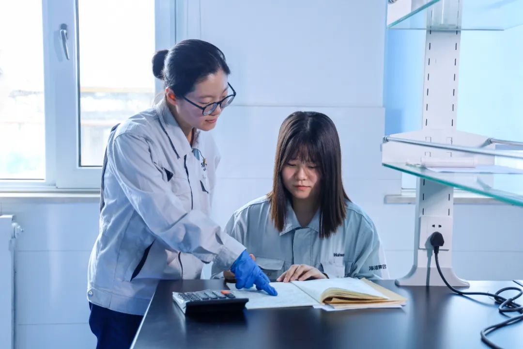 陈双的其中一位徒弟张廷廷已成长为碱业发展质量监督部高级主管,“我是中国石油大学毕业的硕士研究生,2021年进厂,那时陈主管从怎么拿锥形瓶、怎么使用滴定管等基础的操作手法一点一点教给我。”张廷廷回忆起与陈双的相处的细节时说,在陈双教给她检测技术和手法的同时,她们也共同探讨如何改进检测技术。“在做COD(化学需氧量)测定时,陈主管教给我的是将试管摇匀后直接测定,随着物体沉降,数据一直不断变化,就导致了得出的数值并不稳定。我向陈主管提出这一问题,后来我们查阅文献,决定将试管摇匀后静置一段时间,再进行测量。”
