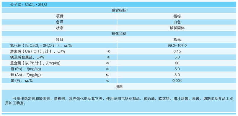 执行标准:GB 1886.45-2016 食品级氯化钙