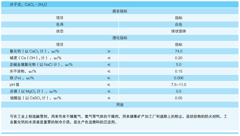 产品种类:本公司可生产粒度 2-5mm 球粒状二水氯化钙和 12% ~ 40% 清钙液