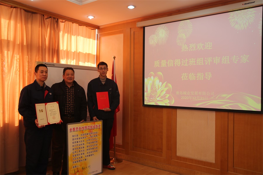 2020年12月31日,经过专家严格考察审核,碱业发展硫酸钾化工甲班以位列青岛市13家获奖企业班组第一名的好成绩,成功荣获“全国质量信得过班组”称号。这是企业班组迄今为止获得的最高荣誉。