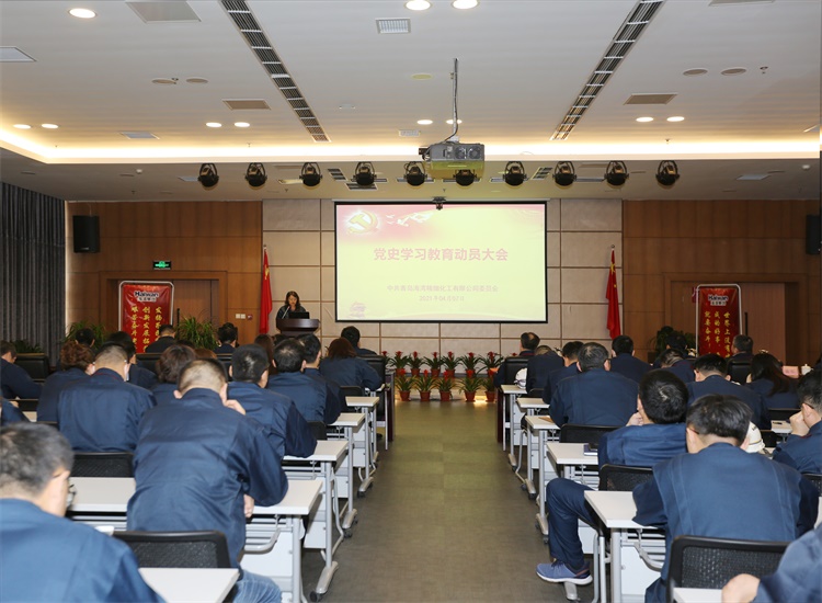 4月7日,海湾精化在多功能厅召开党史学习教育动员大会。企业党委书记、董事长赵秀平作动员讲话,党委副书记、纪委书记、工会主席于曙光主持会议。企业中层助理以上管理人员、党员代表等110余人参会。