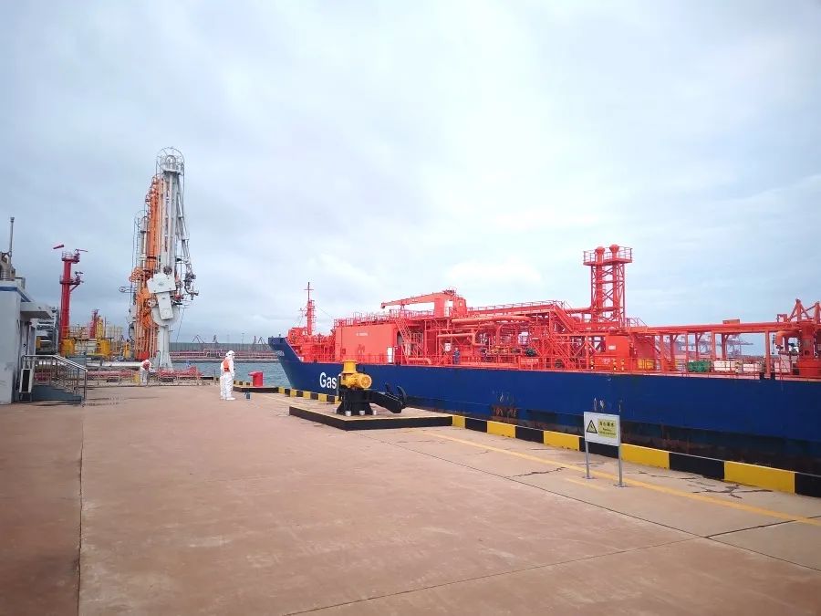 海湾港务调度马群介绍说,装备持续升级对效率持续提升至关重要。自海湾化学新增压缩机投用以来,在原本高效的基础上,我们接卸又跑出加速度。预冷主管线平均时长由12小时缩短至7小时。正常情况下,乙烯平均卸率能够提高到310吨/小时,一艘3000吨左右的乙烯船从启泵到停泵11个小时便可完成接卸,实现昼夜“一靠一离”。