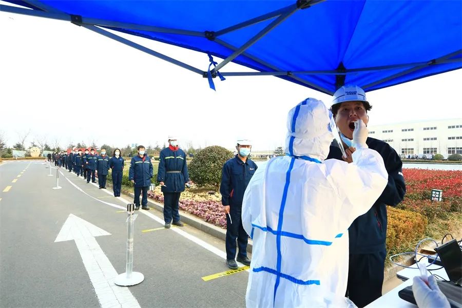 自3月2日以来,海湾化学已组织五轮全员核酸检测,检测人数达11000多人次。作为泊里镇核酸检测志愿服务点,每次接到核酸检测任务,企业总是在第一时间做好医疗物资领取、检测点搭建、人员协调组织等工作,给泊里镇有关人员留下深刻印象。